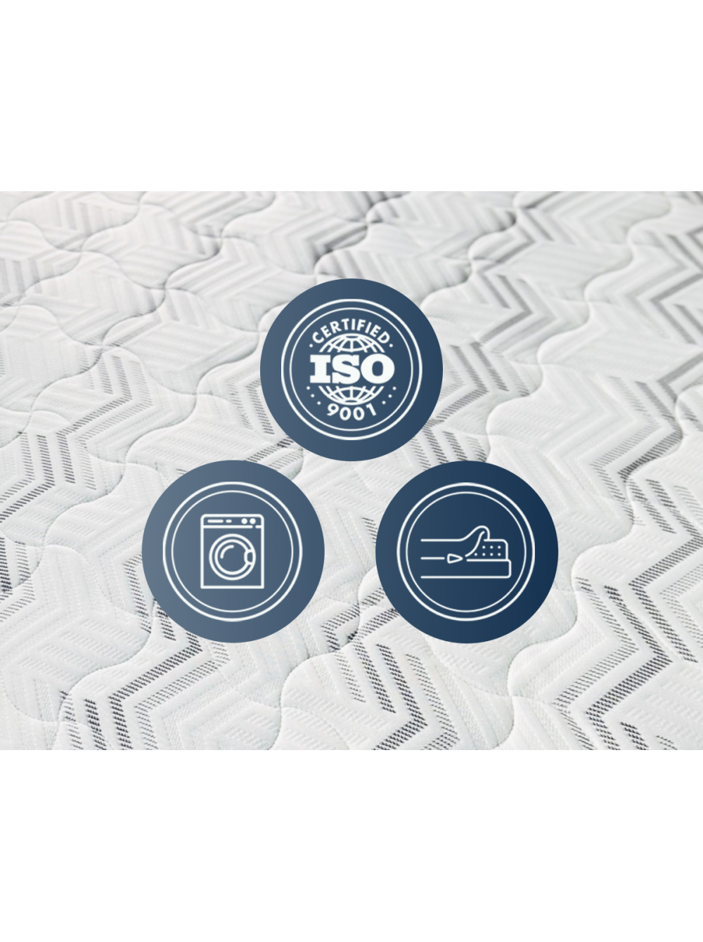 1. Съемный трикотажный чехол Чехол выполнен из прочной трикотажной ткани, в составе которой не менее 40% натурального хлопка. Ткань простегана по технологии глубокой стежки. Особая техника стёжки позволяет равномерно, без потери формы и объёма, зафиксировать все составляющие чехла. Хлопковые нити в составе ткани обеспечивают здоровый микроклимат во время сна. Чехол имеет разъемную молнию, что позволяет стирать его в домашних условиях.